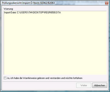 Wenn Sie die Import-Einstellungen gemacht bzw. kontrolliert haben, dann gehen Sie mit dem Button "Weiter >>" zur nächsten Eingabemaske