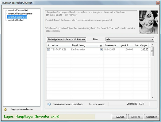 In diesem Schritt des Assistenten können Sie ggf. noch Korrekturen an den gezählten Mengen vornehmen: