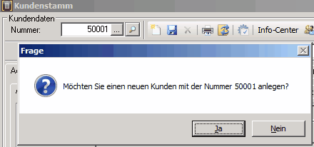 Hinweis: Wenn Sie neue Kunden über diese Funktion anlegen wird immer die nächste freie Nummer nach der Startnummer vorgeschlagen. Das bedeutet, daß auch Lücken im Nummernkreis gefüllt werden!