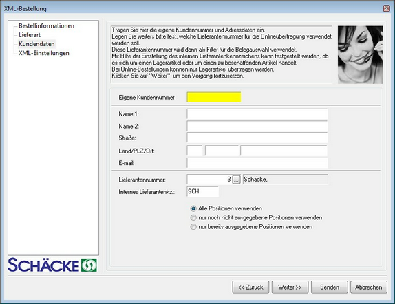 starten Sie aus der Bestellung heraus: --> Online-Dienste --> Schäcke.XML