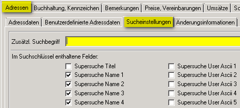Sucheinstellungen: Hier kann eingestellt werden, welche Felder in die Supersuche mit aufgenommen werden sollen.