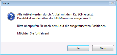 Wenn Sie Artikel tauschen wollen, müssen Sie dieselben Artikel von verschiedenen Lieferanten haben und diese Artikel müssen über das Feld EAN-Nummer miteinander verknüpft sein, d.h. sie müssen dieselbe EAN-Nummer haben.