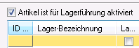 Aktivieren Sie den Artikel im Artikelstamm unter --> Hauptartikel, EAN, Lager für die Lagerführung und weisen Sie das gewünschte Lager zu: