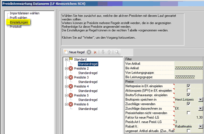 Dieser Schritt ist in der Regel NICHT erforderlich. Sollte es für einen Lieferanten verschiedene Profile geben (z.B. für die Nettopreise), dann erkennt das Programm automatisch, welche Datei mit welchem Profil gewartet werden muss.