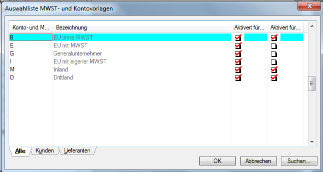 Öffnen Sie im Kundenstamm den Bereich Buchhaltung,Kennzeichen. Klicken Sie dabei im Bereich MWST-Kennzeichen auf