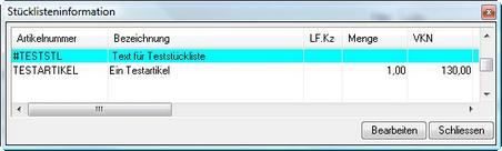 Um während der Kalkulation mit Stücklisten im Beleg die Übersicht zu behalten, kann mit Hilfe dieser Funktion ein Zusatzfenster, das den Inhalt der aktuell markierten Stückliste enthält.