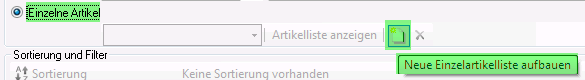 Bevor Sie einzelne Artikeletiketten drucken können, müssen Sie sich eine "Neue Einzelartikelliste aufbauen":