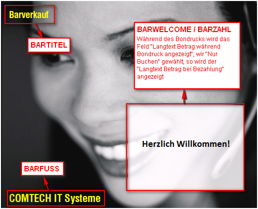 Die angelegten Langtexte können beliebige Felder des Barverkaufs enthalten, wie in diesem Beispiel: