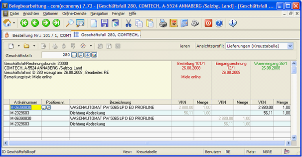 Nach Erhalt dieser Bestätigung sollte die Bestellung im System entsprechend korrigiert und dann verbucht werden!