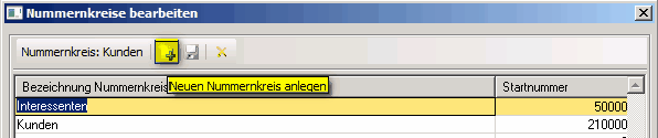 Anschließend können Sie neue Nummernkreise mit den jeweiligen Startnummern anlegen: