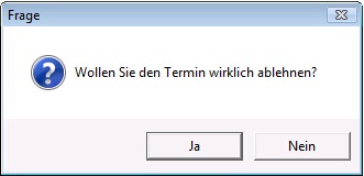 Ablehnen: Wenn Sie den Termin ablehnen, erhalten Sie folgende Sicherheitsabfrage: