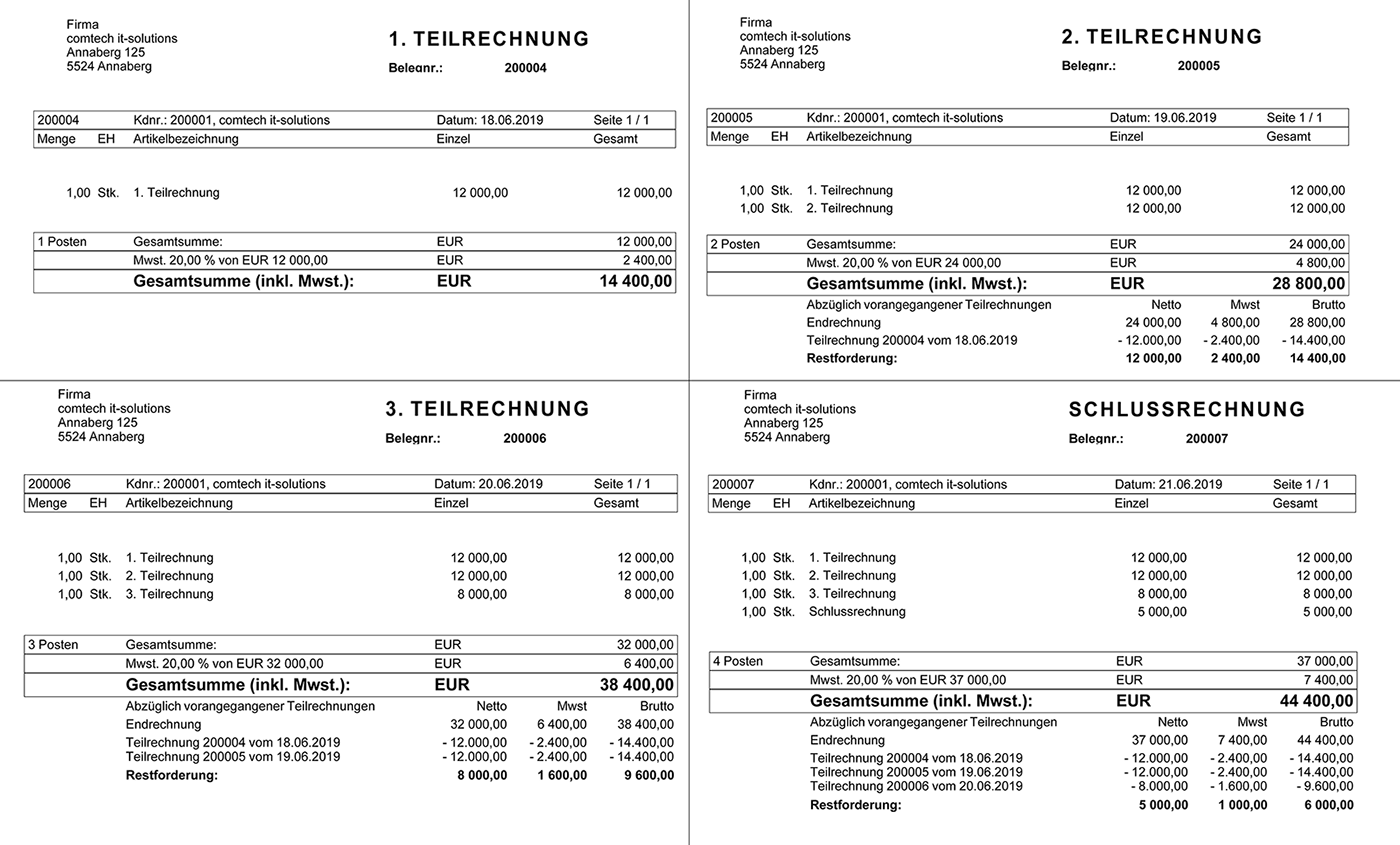 Es kann beliebig viele Teilrechnungen in einem Geschäftsfall geben.