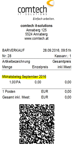 Der Monatsbeleg muss als letzter Beleg eines jeden Monats erzeugt werden.