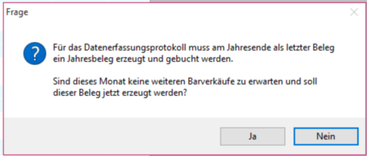 Hinweismeldung für Jahresbeleg ab 20. Dezember