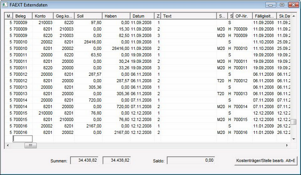 3. Die Buchungsdatei in der com(economy) - (FAEXT Externdaten):