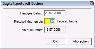 Man kann entscheiden, ob das Protokoll bis zu einem bestimmten Datum gelöscht werden soll oder xxx Tage ab heute.