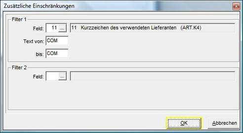 Je nach ausgewählter Feldereinschränkung kann man dann im Feld Text von ____bis____ die gewünschte Einschränkung durchführen.