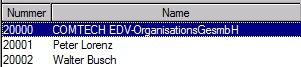 Variante 2: Mit "Alt" + "i" wird das Info-Center mit allen Kunden geöffnet. Diese Auflistung können Sie mit einem Mausklick auf die Überschriftszeile entweder nach der "Nummer" oder nach dem "Namen" sortieren (nur aufsteigend!):
