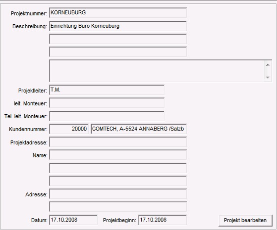 Voraussetzung: Sie müssen das Programm "Projektverwaltung" im Einsatz haben. Details dazu siehe: "Projektverwaltung"