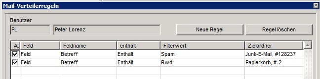 Mit dieser Funktion können Sie Regeln definieren, nach denen bestimmte Mails in bestimmte Ordner (und nicht in Ihre Mailbox) übernommen werden sollen.