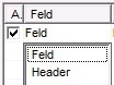 Hinweis zu Feldauswahl "Header": Wenn Sie in der ersten Spalte "Header" ausgewählt haben, erscheint in der nächsten Spalte folgende Auswahlliste: