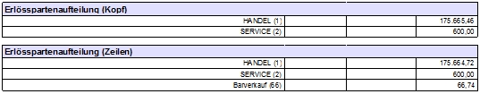 Erlösspartenauswertung ausgeben Gibt die Umsätze auf Erllössparten aufgeteilt aus: