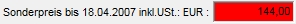 Wenn Sie mit der Sonderpreisverwaltung arbeiten, ist es möglich, dass dieser Sonderpreis in der Artikelpreisauskunft angezeigt wird. Somit können Sie immer leicht erkennen, ob Sie einen Sonderpreis zu diesem Artikel haben, und wenn ja, wie lange dieser Sonderpreis noch gilt. Dieser Preis wird rechts unten, in einem rot hinterlegten Feld, angezeigt. Solche Sonderpreise können zum Beispiel auch bei der Schäckepreiswartung mitgeliefert werden: