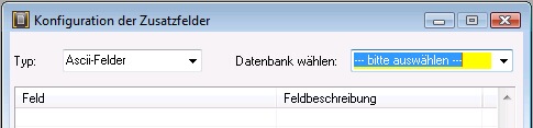 In dem Moment, in dem Sie die Datenbank auswählen, werden im unteren Teil die vorgesehenen Zusatzfelder (mit den jeweiligen fixen Feldlängen) angezeigt: