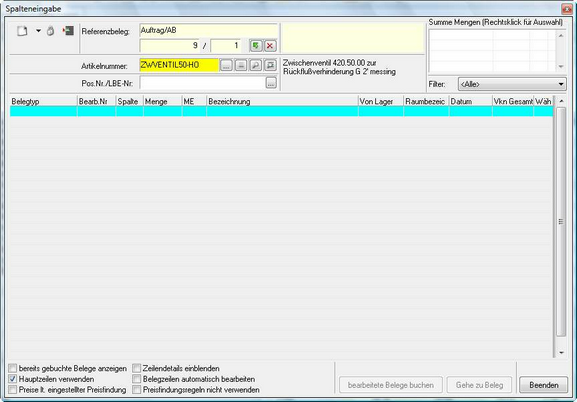Wenn Sie vorher den Referenzbeleg am Bildschirm aktiviert haben, dann wird dieser Referenzbeleg sofort als Grundlage übernommen und voreingestellt, im Beispiel unten der Auftrag 9/1