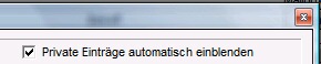 Hinweis: Wenn Sie die Variante 1 (Private Einträge automatisch einblenden) aktiviert haben, ist zugleich auch die Variante 2 in den Optionen aktiv. Sie können aber trotzdem die privaten Einträge wieder ausblenden, indem Sie diese Funktion (bis zum nächsten Start von com(organize)) wieder deaktivieren.